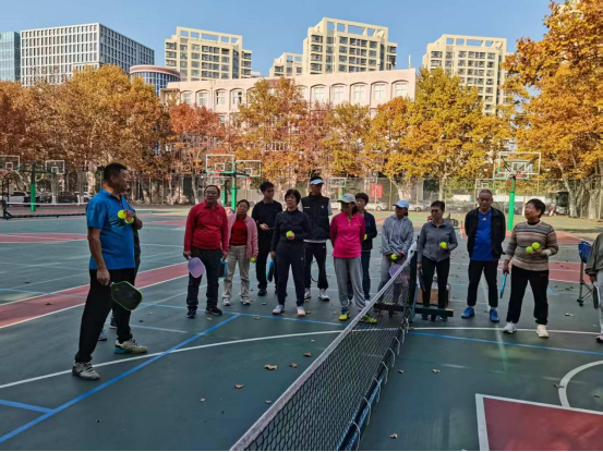 11月4日下午,由离退休工作处主办,学校老年网球匹克球协会承办的2025离退休教职工网球匹克球训练营在四方校区网球场开营。本次训练营以“老有所乐‘网’前行,青科银龄绽风采”为主题,吸引了全校近30名离退休教职工参与。