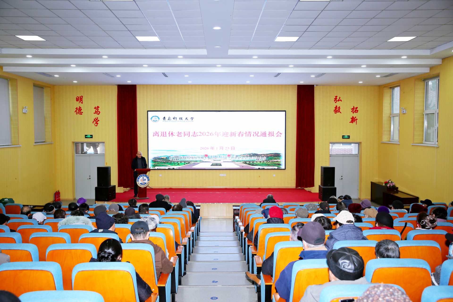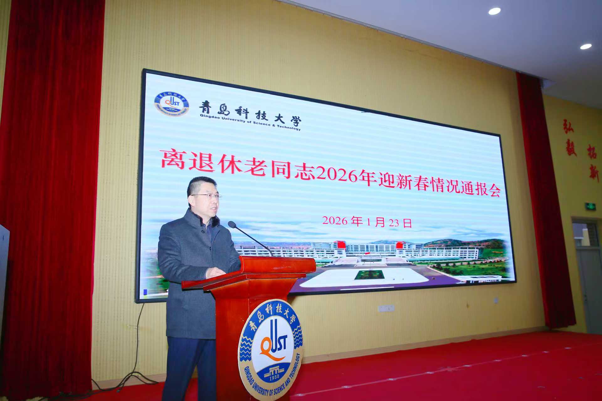 1月23日上午,学校在四方校区尚舜报告厅召开离退休老同志2026年迎新春情况通报会。党委常委、副校长吕万翔出席会议并通报学校2025年事业发展情况。